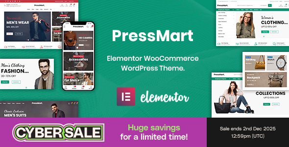 PressMart is modern and unique Elementor WooCommerce WordPress Theme. It comes with high-quality 05+ Prebuild Home Pages that fit any online store such as fashion store, electronics store, furniture store, etc.